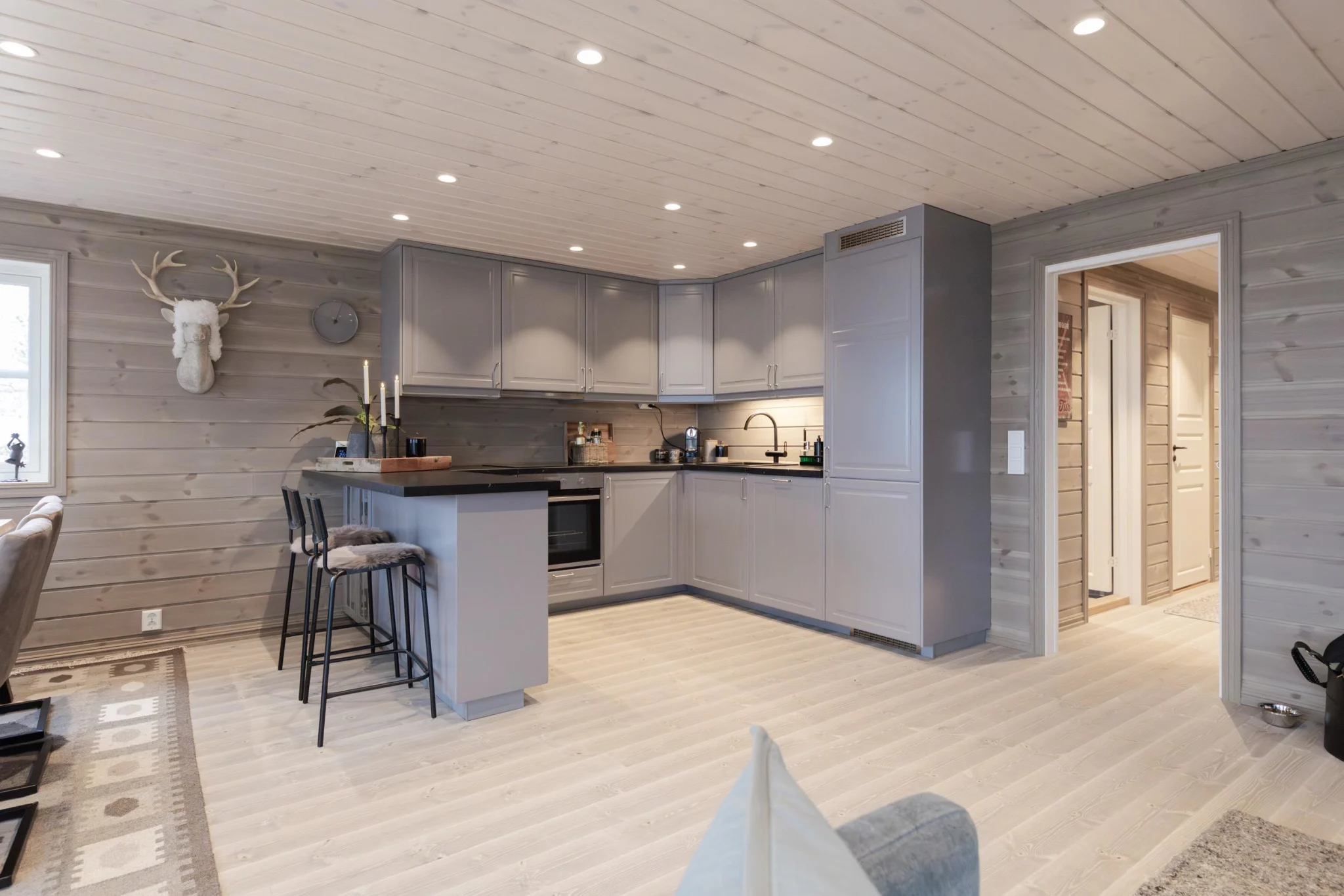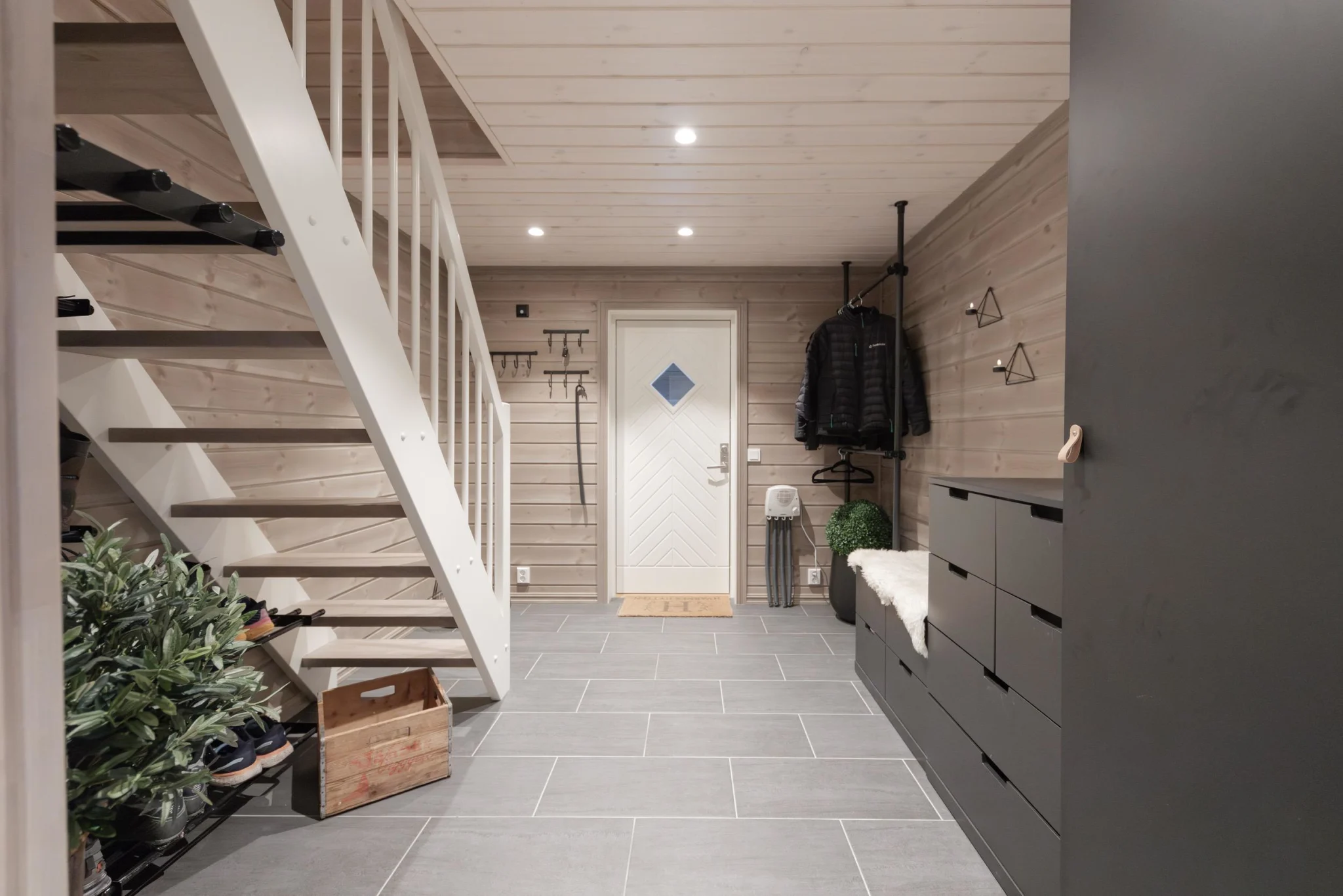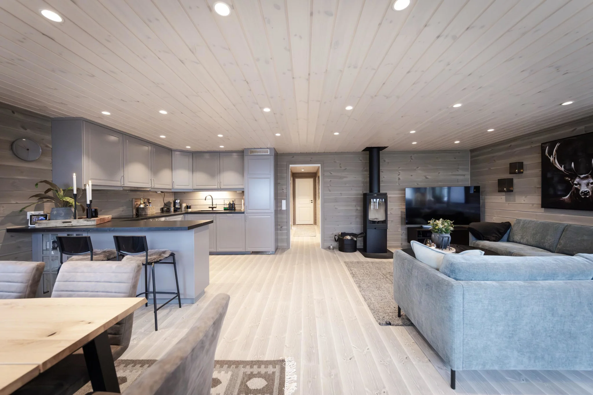 Buchen Sie eine BesichtigungFurutangen 85 ist eine gute Wahl für alle, die Gäste für Wochenendausflüge und Urlaube einladen möchten. Die Hütte verfügt über funktionale Räume auf zwei geräumigen Ebenen, wobei eine Etage als vollwertiges Loft mit angenehmer Deckenhöhe, Fernsehzimmer und zwei weiteren Zimmern dient. Darüber hinaus verfügt die Hütte über zwei gute Schlafzimmer, ein Badezimmer mit Waschmaschine und ein geräumiges Wohnzimmer mit offener Küche. Es gibt sowohl internen als auch externen Stauraum sowie viel Platz für Garderobenlösungen in mehreren Zimmern.